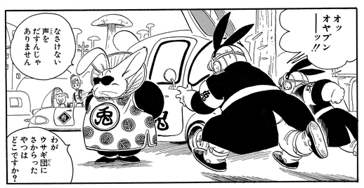 Als Goku und seine Gefährten sich den Handlangern des Hasenmobs widersetzen und versuchen, ein Dorf unter ihrer Kontrolle zu befreien, erscheint Toninjinka am Tatort, um ihnen zu zeigen, wer der Boss ist.