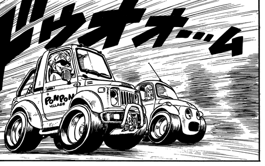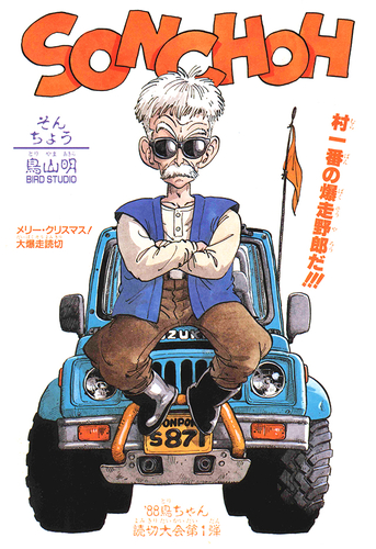 Sonchoh erschien im Rahmen von Weekly's Shonen Jumps "Merry Christmas! A Barrage of One-Shot Manga"-Event, das das Magazin mit 4,85 Millionen im Umlauf befindlichen Ausgaben feiern sollte. Sonchoh ist größtenteils eine lange Verfolgungsjagd mit dem Ältesten von Pon-Pon Village, der sein Lieblingsauto auf der Suche nach Taugenichtsen herumfährt. Diese Geschichte gab Toriyama die Chance, etwas zu zeichnen, das er liebt: Autos. Daher ist es nur natürlich, dass die Verfolgungsjagden wirklich einen Schlag haben!
