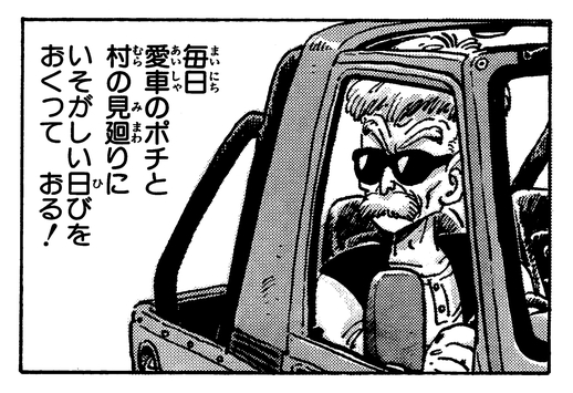 Der Älteste des Dorfes Pon-Pon, Tetsunoshin Kataiwa, schützt den Frieden und die Heiligkeit seines Wohnortes, indem er in seinem geliebten Auto Pochi herumfährt und ein wachsames Auge auf jedes Fehlverhalten hat.
