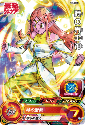 Die Bonus- SDBH -Karte in dieser Ausgabe ist die Supreme Kai of Time in ihrem Zustand „Time Power Unleashed“, mit der sie gegen Aeos kämpft!