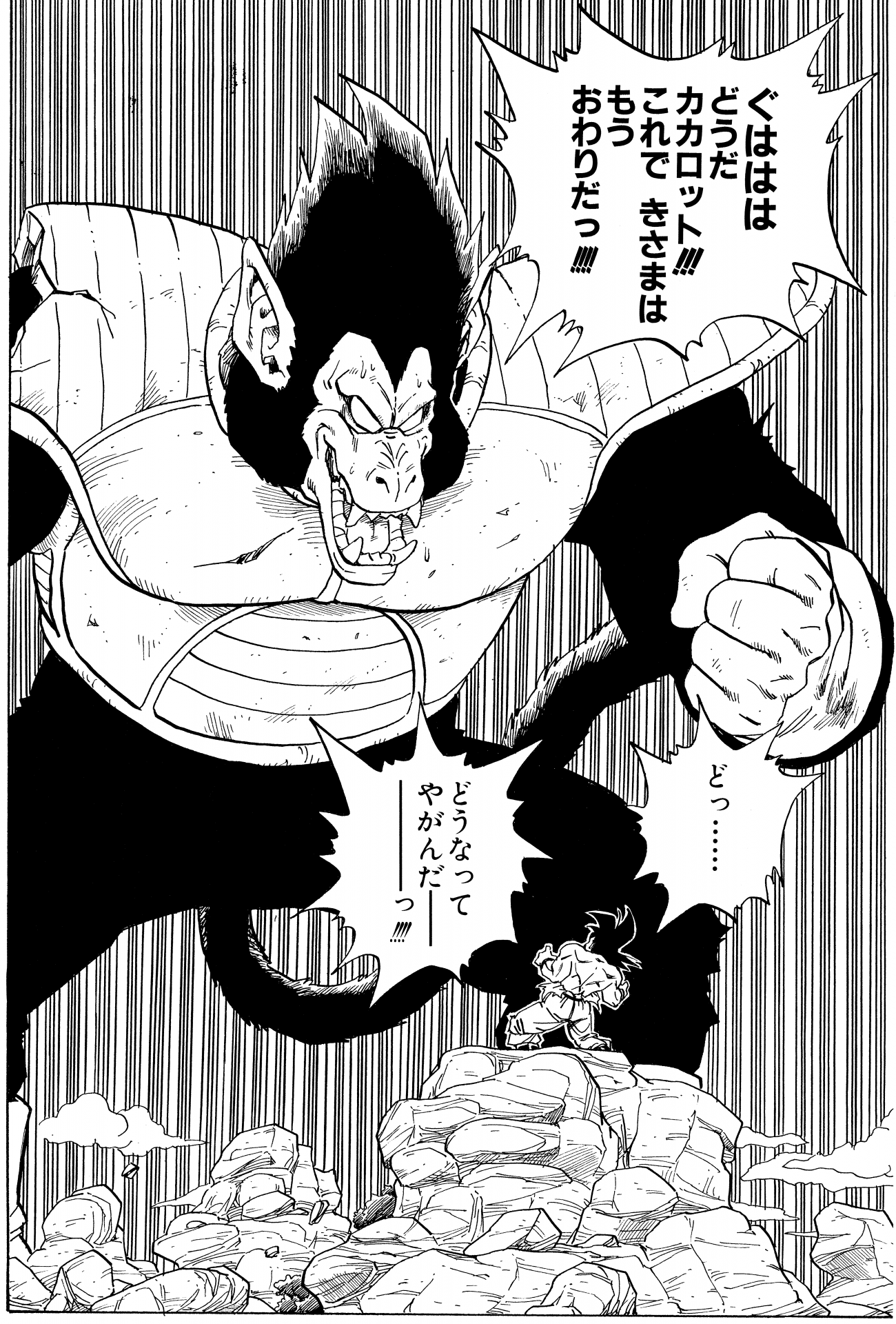 Als Vegetas Kämpfe gegen Friezas Schergen intensiver wurden, erlag seine Kampfrüstung schließlich dem Schaden und zwang den Prinzen, sich in ein anderes Modell zu verwandeln. Es gab jedoch keines der neueren Modelle in Vegetas Größe, so dass er mit einem älteren Modell ohne Schulter- oder Hüftpolster auskommen musste. Trotzdem zog er seine Markenhandschuhe und -stiefel an. Falls Sie neugierig waren, ist Vegeta 164 cm groß und wiegt 56 kg!
