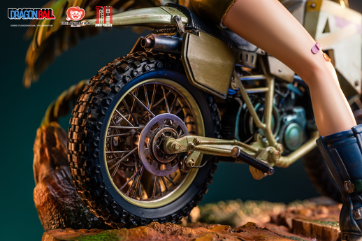 Und als ob das noch nicht genug wäre, wurde sogar das Motorrad, das sie fährt, von seinem kurzen Auftritt im Anime bis ins kleinste Detail nachgebildet! Es fängt nicht nur alle einzigartigen Eigenschaften eines von Toriyama entworfenen Fahrzeugs ein, es ist auch so gefärbt, dass es wie ein Motorrad aussieht, das seinen fairen Anteil an Zeit auf der Straße gesehen hat. Es ist definitiv das Highlight dieser erstaunlichen Statuenfigur!
