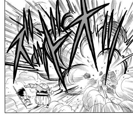 Majin Buu ist der schelmische rosa Unruhestifter, der er ist, und versucht, dem Jungen einen Schrecken einzujagen, indem er mit seiner Spucke eine gewaltige Explosion auslöst!