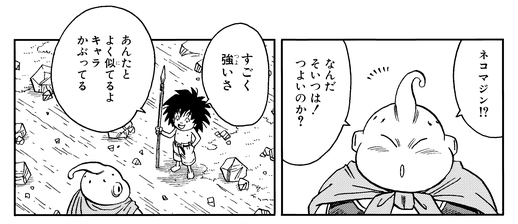 Obwohl er überrascht ist, dass die Kreatur vor ihm überhaupt nicht Neko Majin ist, scheint der Junge auch nicht zu wissen, wer Majin Buu ist.
