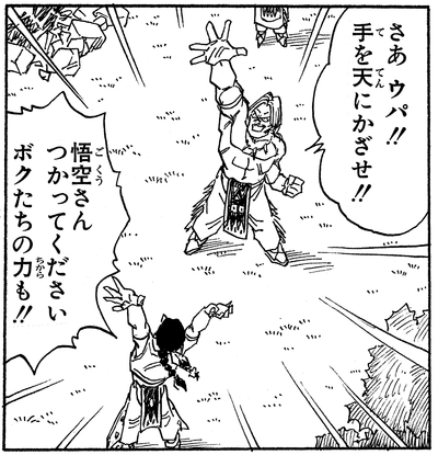 Als Goku seine Absicht erklärt, den Karin Tower erneut zu erklimmen, um zu trainieren und stark genug zu werden, um den Dämonenkönig zu besiegen, hilft Bora dabei, den Aufstieg zu beschleunigen, indem er den Jungen mit einem mächtigen Armschwung auf halbe Höhe des Turms wirft!