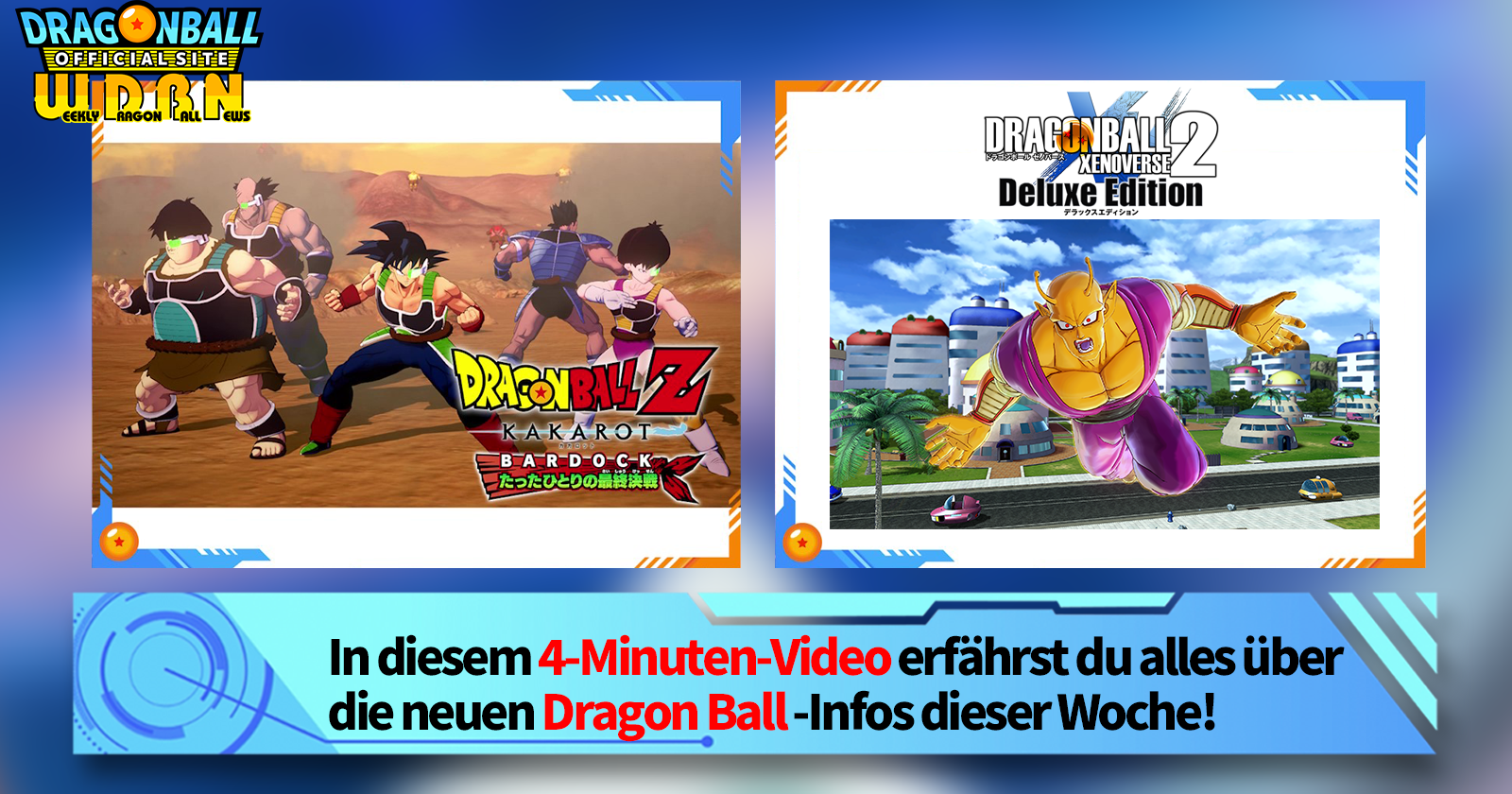"Weekly Dragon Ball News" ist eine Videoserie, die jeden Montag (JST) aktualisiert wird, um Ihnen die neuesten Nachrichten in der Welt von Dragon Ball zu bringen! Schließen Sie sich V Jump Redakteur Victory Uchida an, wenn er über die heißesten Informationen der vergangenen Woche sowie über neue Updates wie neue Produktinformationen und Website-News für die kommende Woche berichtet!