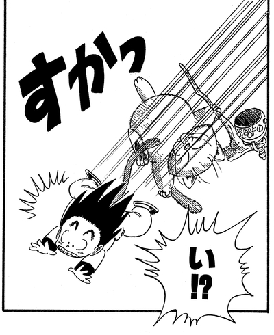 Karin schafft es sogar, Gokus Vier-Sterne- Dragon Ball zu schlagen und über die Kante zu werfen, um Goku zu zwingen, ihn zu holen und den Turm als Training noch einmal zu erklimmen.