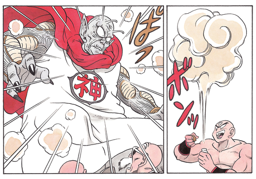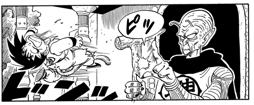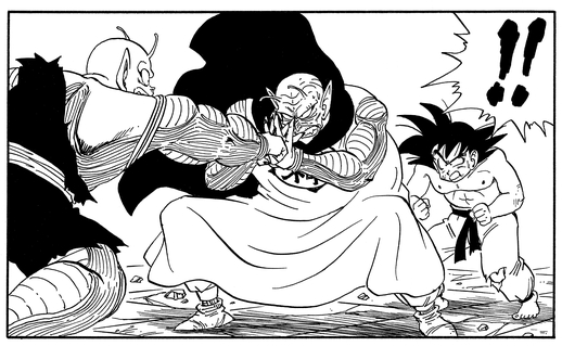 Tatsächlich sehen sie so ähnlich aus, dass Goku, als er zum ersten Mal mit Kami in Kontakt kommt, ihn für den bösen Tyrannen hält und einen Angriff startet! Da Kami jedoch selbst ein begeisterter Kampfkünstler ist, bringt er Goku mühelos mit einem Fingerschnippen ins Wanken.