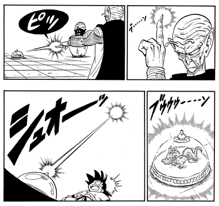 Kami ist in der Lage, mit seinen Fingern eine Ki-Explosion zu erzeugen und zu manipulieren, die stark genug ist, um Piccolo zurückzustoßen.