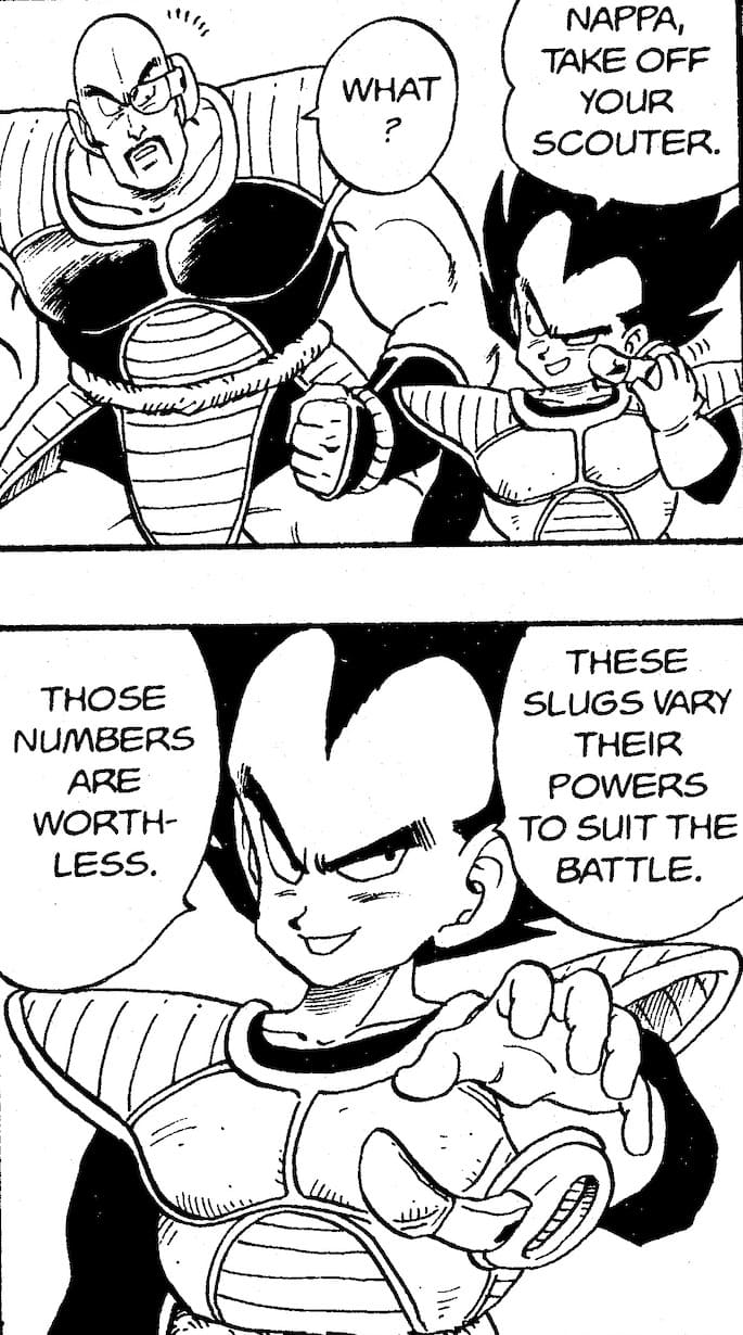 Sobald es die Klasse des Subjekts bestimmt hat, liest es eine andere Datenbank, um sein Power Level zu berechnen. Das ist die mathematische Funktion. Meine Hypothese ist, dass das Berechnungssystem des Geräts aus diesen beiden Merkmalen besteht. Wenn Sie es zum Beispiel verwenden, um das Power Level eines Super Saiyajins zu messen, würde es zuerst das Ziel als Super Saiyan identifizieren und dann auf die Daten verweisen, die es über Super Saiyajins hat, um festzustellen, dass das Ziel sehr mächtig sein könnte, unabhängig davon, ob es groß ist oder klein.