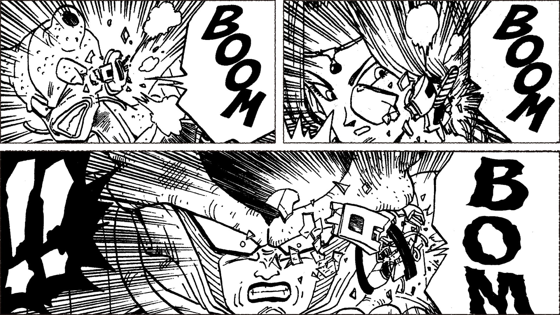 Kato: Das stimmt, Scouter, die für „kaputt“ erklärt wurden und plötzlich explodierten, waren ein fester Bestandteil der Handlungsstränge von Saiyajin und Frieza . Ich wollte Sie eigentlich fragen, ob Sow-ters auch explodieren könnten, aber ich hatte Angst, Sie würden mich für einen Idioten halten, wenn ich das täte, also hielt ich den Mund.