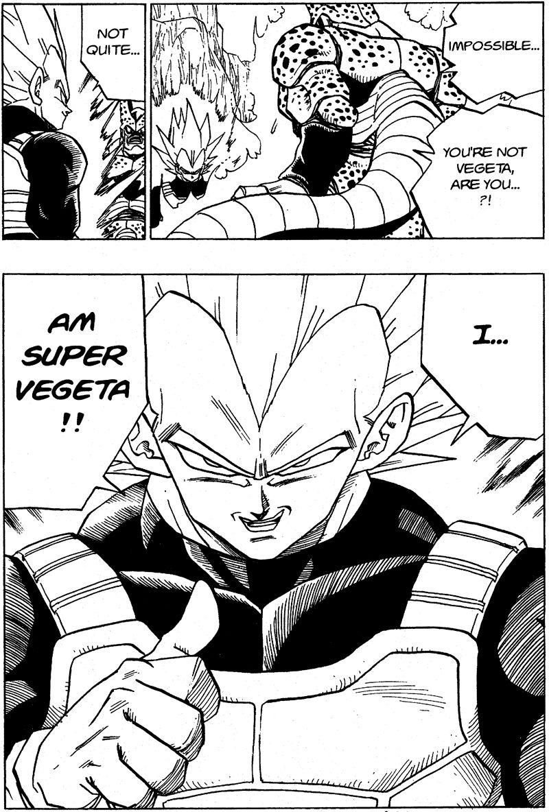 ——Wenn du es so ausdrückst, kann ich den Humor in Cells verwirrter Reaktion auf das "Ich... bin SUPER Vegeta!!" Linie.