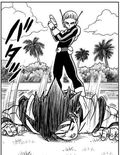 Als Merus beobachtet, wie Moro seine Kopierfähigkeit einsetzt, um Goku in die Enge zu treiben, verflucht er seine Unfähigkeit, seinem Saiyajin-Kameraden zu helfen, seine Ultra Instinct Verwandlung zu perfektionieren.