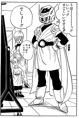 Seit Gerüchte über einen „Goldenen Krieger“ zu kursieren begannen, seit Gohan seine Super Saiyan Form benutzte, um sich zu verkleiden und einige gefährliche Kriminelle vor Gericht zu stellen, sprach er mit Bulma darüber, wie er seine Identität besser verbergen könnte. Nach dem gleichen Prinzip wie die Hoipoi-Kapseln verwandelte sie seinen Anzug in Partikel, die dann in einem uhrähnlichen Gerät gespeichert wurden, das Gohan an seinem Handgelenk tragen konnte. Mit nur einem Knopfdruck könnte er sich in einen fantastischen Helden der Gerechtigkeit verwandeln!