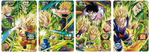 Diese Kampagnenkarten mit Kriegern, die dem erbitterten Kampf gegen Broly getrotzt haben, wurden mit gepaarten Kunstwerken entworfen, die ein einziges Bild ergeben, wenn zwei nebeneinander aufgereiht werden! Und um beim Thema zu bleiben, sind sie alle mit einer Fähigkeit ausgestattet, die sie stärker macht, wenn es einen Broly im gegnerischen Team gibt!