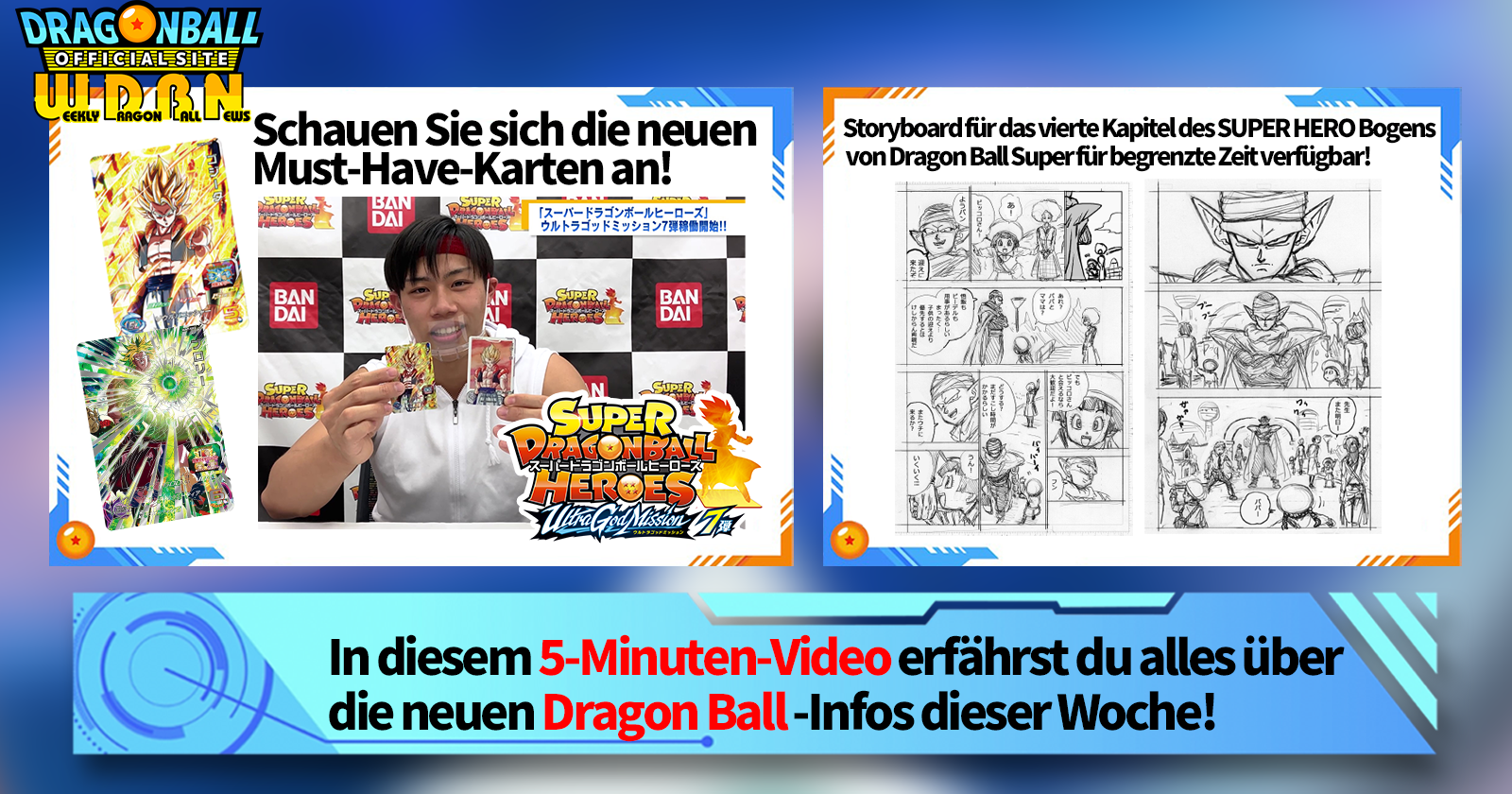 "Weekly Dragon Ball News" ist eine Videoserie, die jeden Montag (JST) aktualisiert wird, um Ihnen die neuesten Nachrichten in der Welt von Dragon Ball zu bringen! Schließen Sie sich V Jump Redakteur Victory Uchida an, wenn er über die heißesten Informationen der vergangenen Woche sowie über neue Updates wie neue Produktinformationen und Website-News für die kommende Woche berichtet!