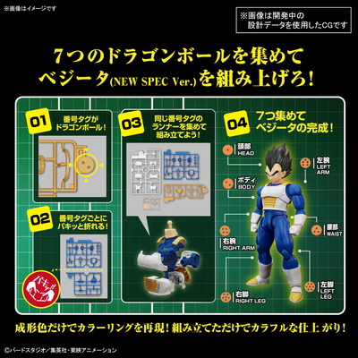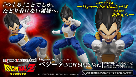"NEUE SPEZIFIKATION Ver." ist eine Reihe von Figuren der Plastikmodellmarke Figure-rise Standard, die die neueste Figurentechnologie nutzt, um ihre fantastischen Veröffentlichungen zu verbessern! Die zweite Figur, die zur NEW SPEC Ver. Lineup nach Goku ist niemand anderes als sein Rivale Figure-rise Standard Vegeta (NEUE SPEC Ver.), der im Juli 2023 erscheinen soll!