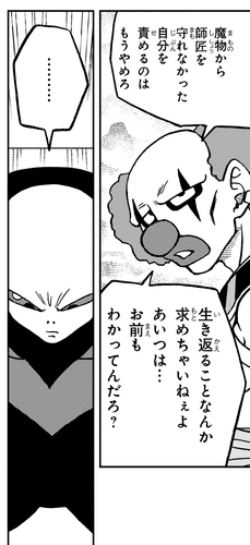 Als es der Zusammenarbeit und Teamarbeit von Goku und seinen Verbündeten endlich gelang, das Blatt bei Jiren zu wenden, enthüllt Belmod , dass Gicchin immer versucht hatte, seinem Schüler die Bedeutung der Zusammenarbeit mit anderen zu vermitteln.