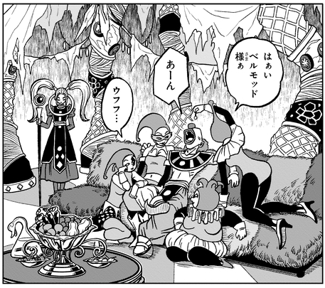Als der allmächtige Zeno Goku und Toppo zum Kampf auffordert, weist Belmod seinen Schüler an, allen zu zeigen, was in ihm steckt, damit sie keine andere Wahl haben, als seine Macht anzuerkennen. Als Toppo beginnt, Goku zu überwältigen, freut sich Belmod und lobt Toppos Kampfstil. Er fordert Toppo auf, den Sieg zu garantieren, und beobachtet dann das Geschehen mit einem zuversichtlichen Ausdruck auf seinem Gesicht.
