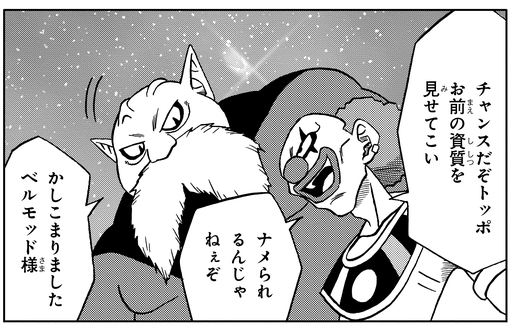 Bemod denkt darüber nach, sich von seiner Position als God of Destruction zurückzuziehen und bildet den Krieger Toppo aus, um ihn zu übernehmen.