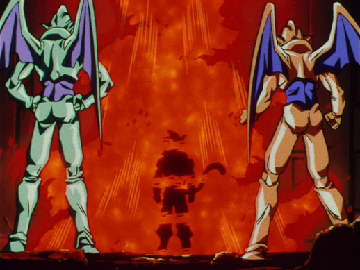 Goku muss dann Pan vor Schaden beschützen und San-Shinron freie Hand geben, um eine Reihe unerbittlicher Angriffe auszuführen.