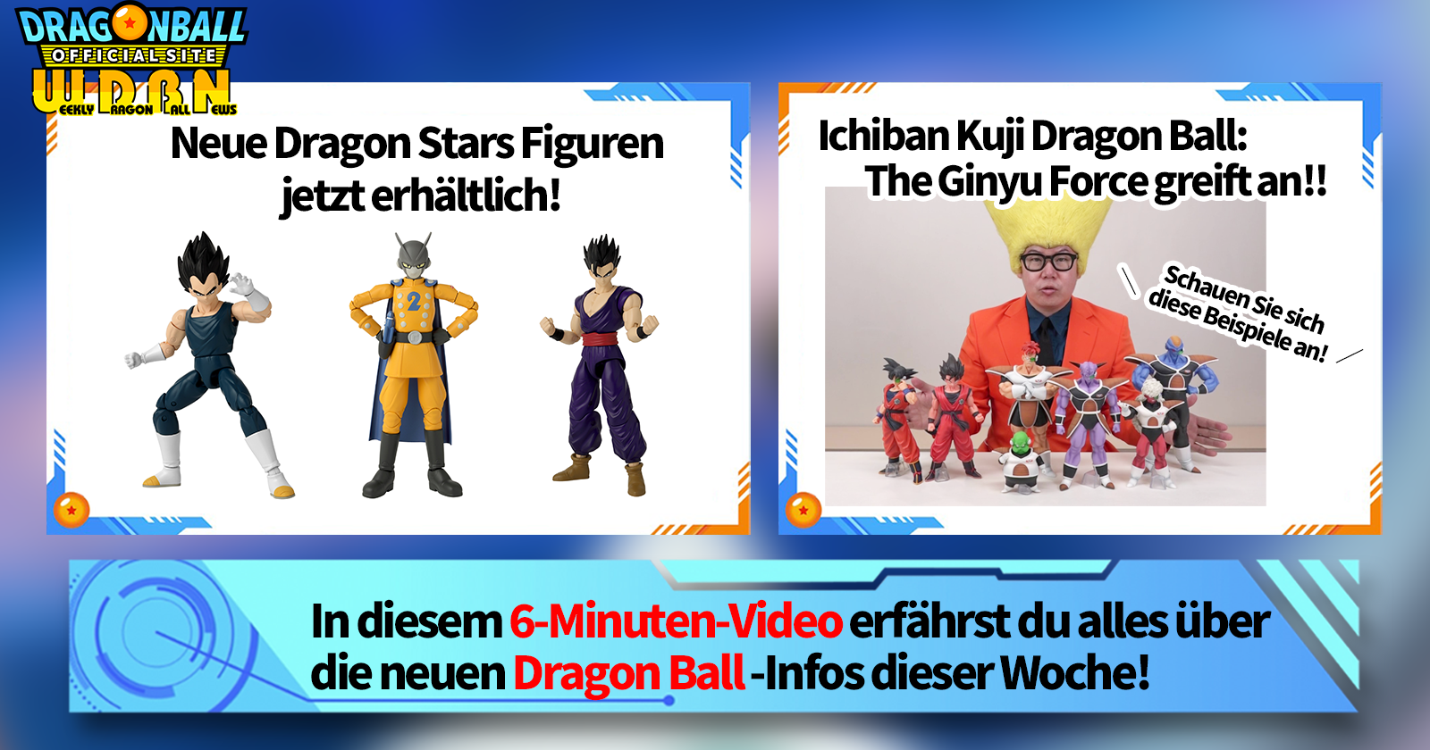 "Weekly Dragon Ball News" ist eine Videoserie, die jeden Montag (JST) aktualisiert wird, um Ihnen die neuesten Nachrichten in der Welt von Dragon Ball zu bringen! Schließen Sie sich V Jump Redakteur Victory Uchida an, wenn er über die heißesten Informationen der vergangenen Woche sowie über neue Updates wie neue Produktinformationen und Website-News für die kommende Woche berichtet!
