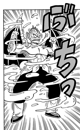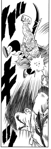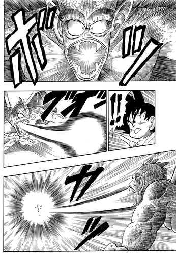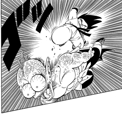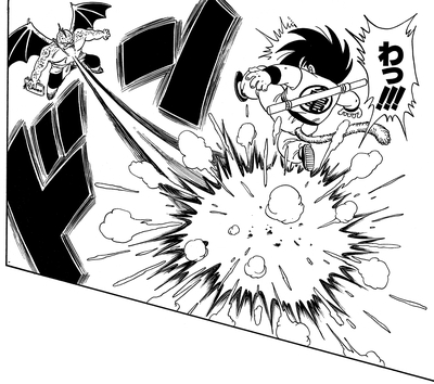 Diesmal sind die Dinge jedoch anders und Goku, der jetzt wieder bei voller Stärke ist, versetzt dem Krieger des Dämonenclans einen vernichtenden Schlag.
