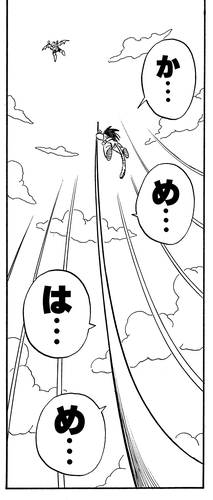Verängstigt von Gokus wahrer Macht versucht Tambourine , in den Himmel zu fliehen, aber Goku benutzt seinen treuen Nyoibo , um ihn einzuholen, und schießt ihn mit einem Kamehameha aus nächster Nähe, das Tambourine zu Staub zerlegt.