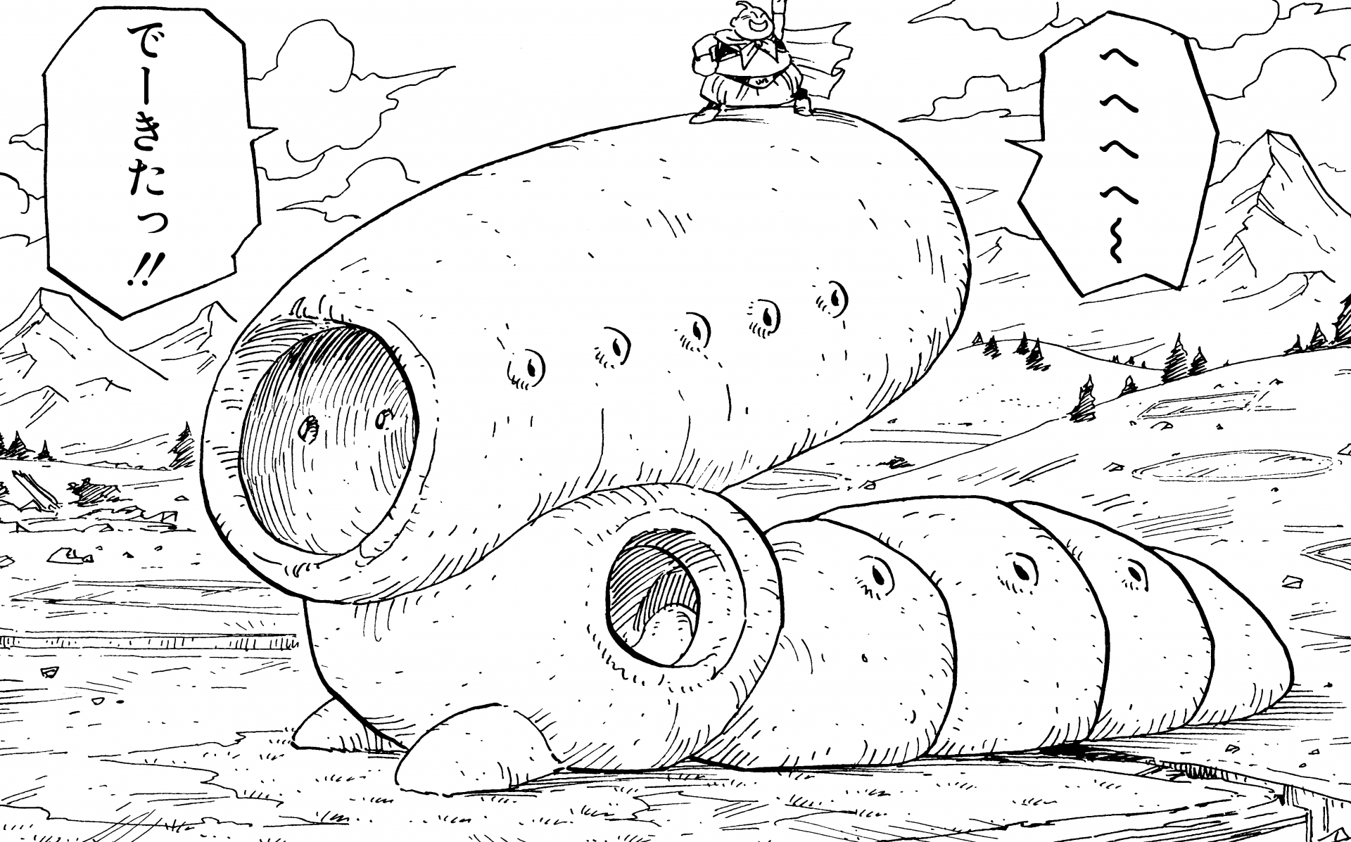 Majin Buu dieses Haus gebaut, damit er ein Nickerchen machen kann. Er hat die Menschen, die früher in der Gegend lebten, in Lehm verwandelt, um ihn zu bauen.