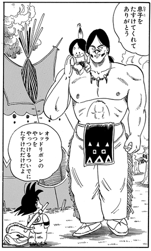 Um seine Dankbarkeit zu zeigen, gibt Upas Vater Bora Goku seinen lange verlorenen Vier-Sterne Dragon Ball.