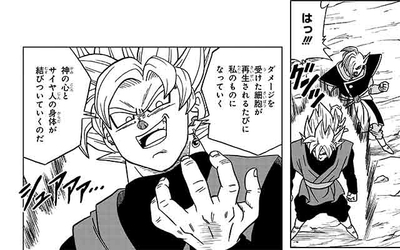 Schlimmer noch, jede Verletzung, die Zamasu heilt, aktiviert Goku Blacks Saiyajin-Zellen und verleiht ihm jedes Mal eine dramatische Kraftsteigerung.