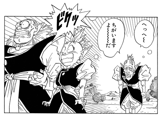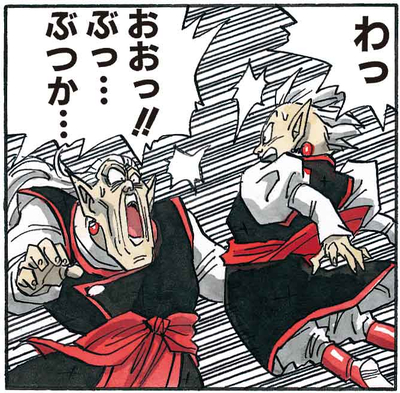 Später gibt der Elder Kai Goku seine Potara-Ohrringe, um Fusion als verstecktes Ass zu nutzen und Majin Buu zu besiegen. Der Supreme Kai testet die Fusion mit seinem eigenen Potara mit Kibito, nur um zu spät herauszufinden, dass die Fusion tatsächlich dauerhaft ist!
