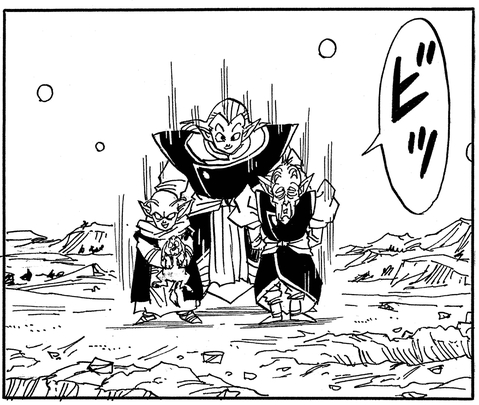 In einer unerwarteten Wendung stellt sich heraus, dass der Supreme Kai von fünfzehn Generationen zuvor im Z Sword eingeschlossen war und Gohan ihn durch das Zerbrechen der Klinge endlich freigelassen hatte!