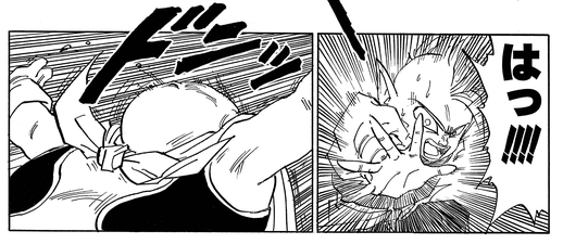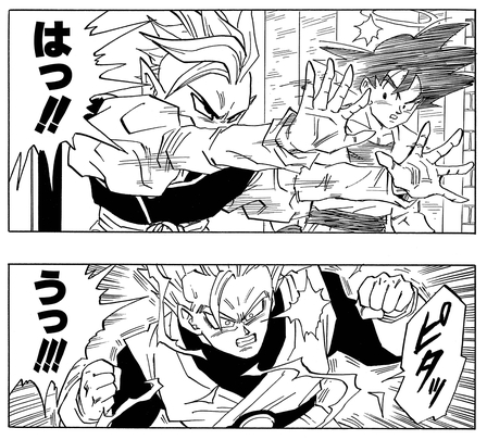 Diese Technik hatte bei Majin Buu keine Wirkung, aber das pummelige rosa Kraftpaket merkte sich den Angriff sofort und setzte ihn mit großer Wirkung bei seinem ursprünglichen Benutzer ein.