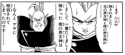 Majin Buu greift den Supreme Kai an und tötet ihn fast, doch er wird glücklicherweise von Kibito geheilt.