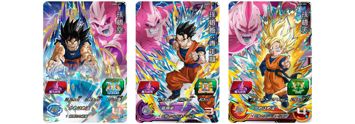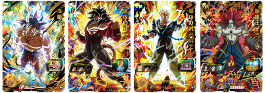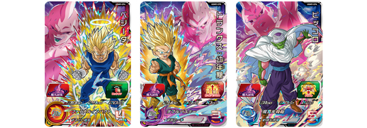 Das UR-Kartensortiment umfasst Karten, die den Kampf gegen Majin Buu sowie Charaktere aus dem Werbeanime nachbilden! Unter anderem sind die speziellen Illustrationen für Majin Buu: Evil und Gohan: Adult so gestaltet, dass Sie eine erstaunliche Kombinationsszene erstellen können, wenn Sie sie nebeneinander platzieren! Schließlich kommen aus dem Werbeanime UR-Karten von Dark King Demigra sowie drei Generationen von Goku und seiner Familie, und diese Saiyajin-Krieger sind nur allzu bereit, gegen den Dark King anzutreten!