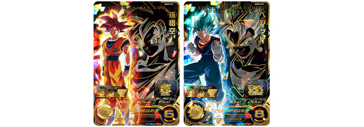 An erster Stelle steht eine SEC-Karte von Goku mit der Superfähigkeit „Gemeinsam über die Zeit hinweg kämpfen“, die es ihm ermöglicht, zusammen mit dem Krieger in Schwarz und dem Krieger der Zukunft in Schwarz einen riesigen Kamehameha abzufeuern! Als nächstes kommt eine neue Goku: GT-Karte, die mit der Fähigkeit „Legendäres Erwachen“ ausgestattet ist! Nach der Verwandlung in einen Great Ape kann dieser Charakter einen Super Saiyan 4 verwandeln. Eine solche Fähigkeit hat es noch nie gegeben!