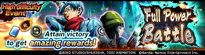 Full Power Battle ist ein herausfordernder 4-gegen-1-Kampf, bei dem Sie und drei Buddy-Charaktere gegen einen Boss antreten! Holen Sie sich die Z-Power, Full-Power-Medaillen und mehr von Goku Black (DBL-EVT-70S) durch die erstmaligen Clear-Belohnungen jeder Stufe! Full Power Battle verfügt außerdem über bestimmte Battle-Bonus-Charaktere, die mächtige Buffs erhalten, darunter den ULTRA- Super Saiyan God SS Vegito aus dem Event „ULTRA RISING – ULTIMATE GOD-BREAKING FUSION –“! Stärken Sie die Battle-Bonus-Charaktere und andere Charaktere, die am besten für den Kampf geeignet sind, und dominieren Sie dieses Event mit Ihrem Kumpel!
