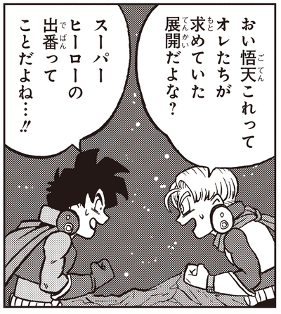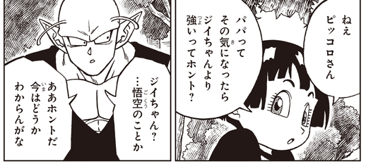Eines Tages beim gemeinsamen Training fragt Pan Piccolo , wie stark ihr Vater wirklich ist. Piccolo antwortet, dass Gohan der stärkste Krieger ist, den es gibt … wenn er sich in einem Kampf befindet, der ihn wirklich an seine Grenzen bringt.