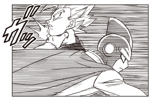 Gohan macht sich sofort auf den Weg, um seine Tochter zu retten, doch Gamma 1 und Gamma 2 versperren ihm den Weg.