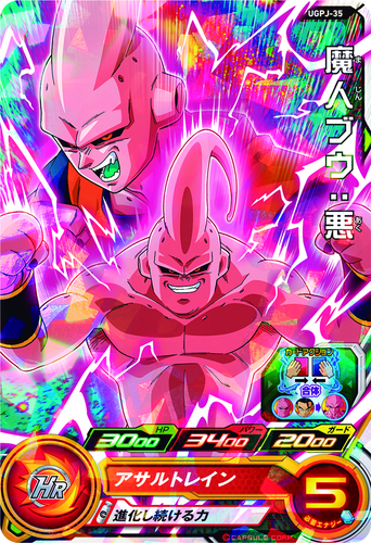 Darüber hinaus enthält dieser Band eine Bonuskarte „Majin Buu: Böse“ mit der Fähigkeit „Absorption“, die es ihm ermöglicht, sich mit einem Partner zu verbinden!