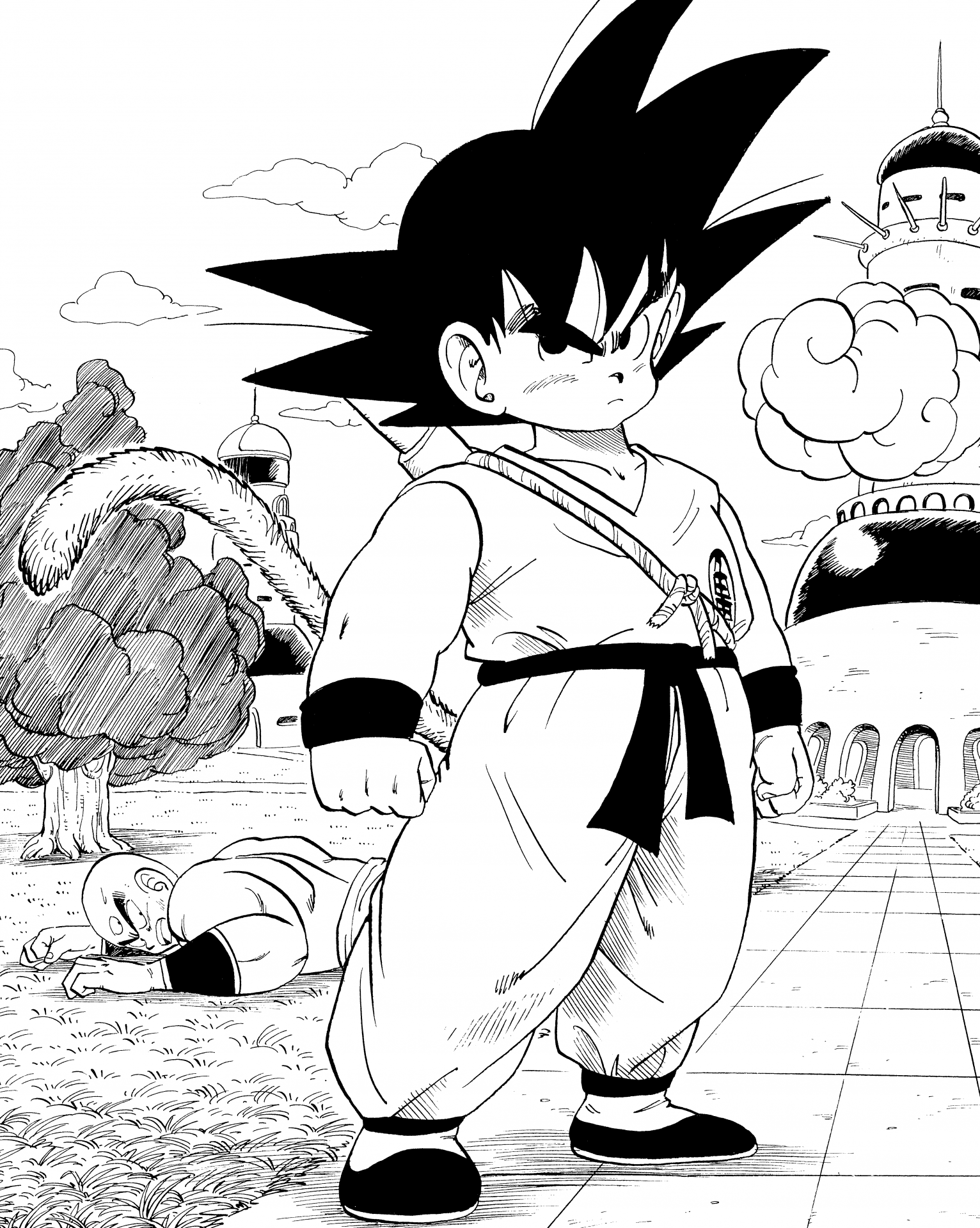 Goku ritt vom Karin Tower auf Kintoun nach Central City, um den Great Demon King Piccolo zu Kintoun .