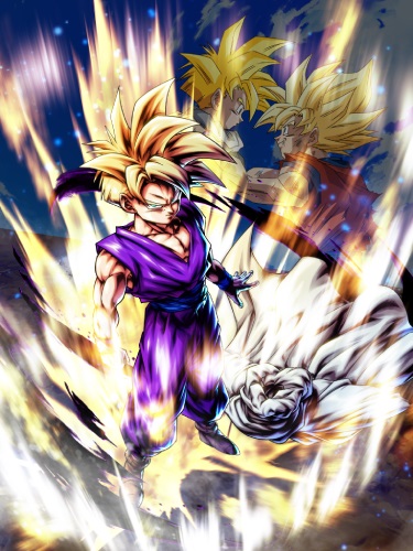 Während Gohan auf dem Schlachtfeld ist, stellt dieser Charakter seine eigene Gesundheit wieder her und erhöht den verursachten Schaden seiner Verbündeten jedes Mal, wenn sie von gegnerischen Angriffs-, Explosions- oder Spezialbewegungskünsten getroffen werden!