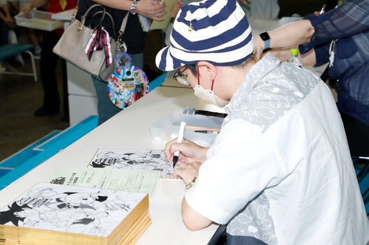 Währenddessen veranstalteten sie im Jump Carnival Studio eine Veranstaltung, bei der man ein Autogramm von den Machern einiger der erfolgreichen Manga-Serien von Saikyo Jump bekommen konnte! Sogar Yoshitaka Nagayama, der Künstler von Saikyo Jumps Super Dragon Ball Heroes: Ultra God Mission!!!!, hatte eine Autogrammstunde!