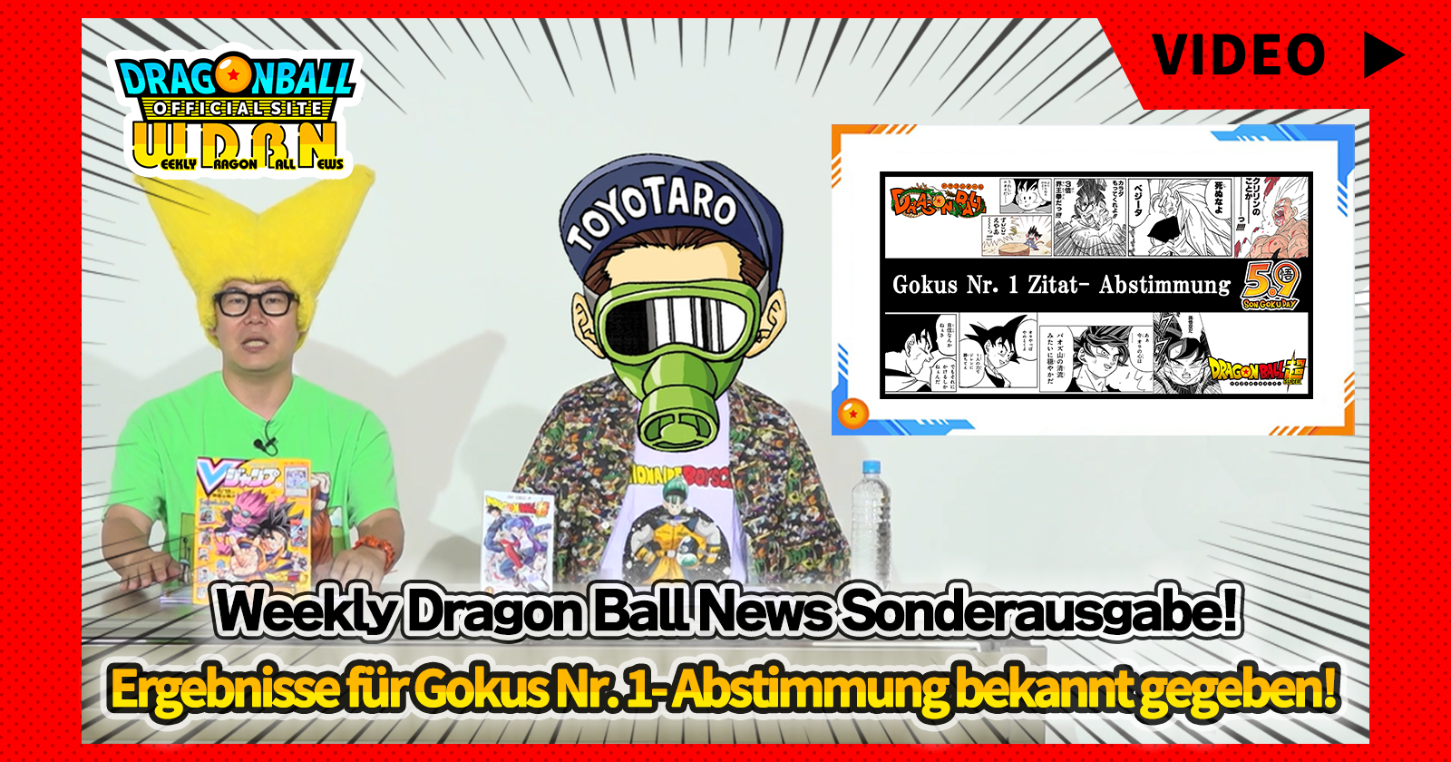 „Weekly Dragon Ball News“ ist eine Videoserie, die jeden Montag (JST) aktualisiert wird, um Ihnen die neuesten Nachrichten aus der Welt von Dragon Ball zu liefern! Das Programm dieser Woche ist eine Sondersendung, die die Ergebnisse von Gokus Abstimmung Nr. 1 bekannt gibt, die dieses Jahr am 9. Mai stattfand, offiziell bekannt als Goku Day!