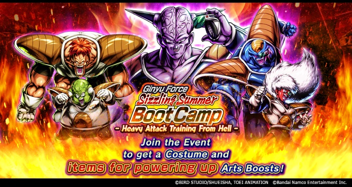 Der Sommer ist da und es ist heiß, heiß, heiß! Jetzt ist es an der Zeit, ins Bootcamp zu gehen und mit Captain Ginyu ein hartes Angriffstraining aus der Hölle zu absolvieren! Sammle Ginyu Force-Medaillen (Heavy Attack Training From Hell) und tausche sie gegen Arts Boost-Power-Up-Gegenstände und mehr!