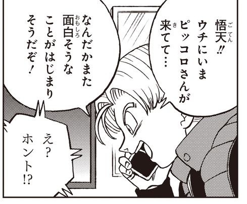 Außerdem wurde Trunks zufällig Zeuge, wie Piccolo kam, um Shenron zu rufen, und kontaktierte schnell seinen besten Freund Goten, um ihm zu sagen, er solle schnell die Uhren mitbringen, mit denen sie sich in Saiyaman X1 und X2 verwandeln.