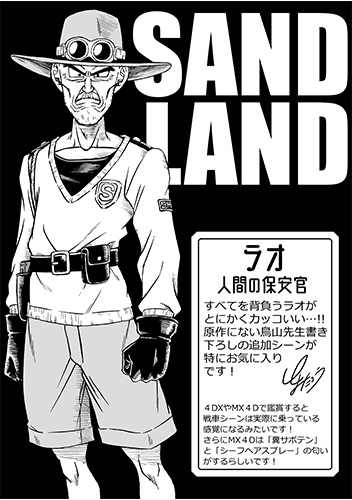 Rao ist ein schroffer Sheriff, der in SAND LAND, Akira Toriyamas legendärem Manga, auftritt, und jetzt wurde aus demselben Manga ein Erfolgsfilm, der in Japan läuft, während Sie dies lesen! Die neuen Szenen, die Toyotarou in seinen Kommentaren erwähnt, spielen sich während des Höhepunkts des Films ab und Rao spielt eine Hauptrolle! Erleben Sie Raos Coolness unbedingt aus erster Hand in einem Kino in Ihrer Nähe!