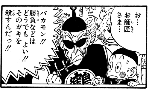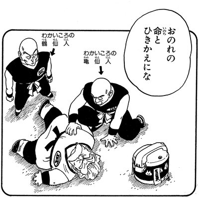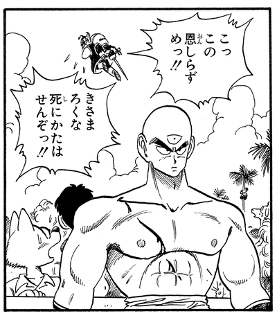 Tenshinhan wollte den Kampf jedoch klar und deutlich gewinnen, was einen wütenden Tsurusennin dazu veranlasst, seinem Schüler zu sagen: „Du hast vergessen, was du mir schuldest … dafür, dass ich dich zu dem Champion gemacht habe, der du bist …!!“