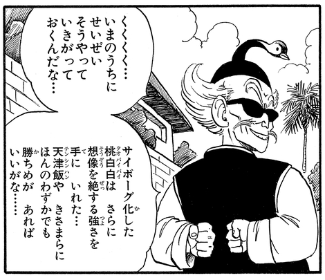 Auf der Suche nach Rache an der Kame School zeigt der hinterhältige Kampfkunstmeister beim 23. Tenkaichi Budokai sein Gesicht und bringt den cyberisierten Taopaipai mit sich.